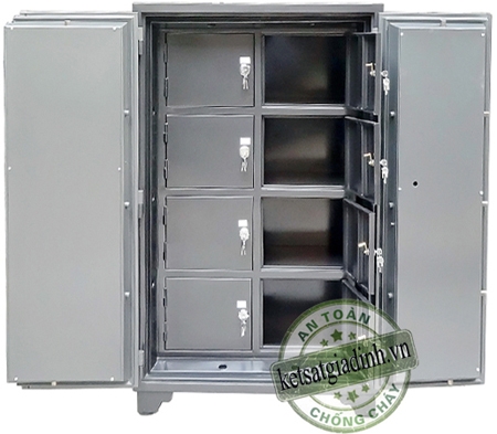 • Tổng cộng 8 ngăn riêng biệt, mỗi ngăn có khóa chìa độc lập.Thiết kế phù hợp cho ngân hàng, công ty, tổ chức tài chính có nhu cầu lưu trữ phân vùng.