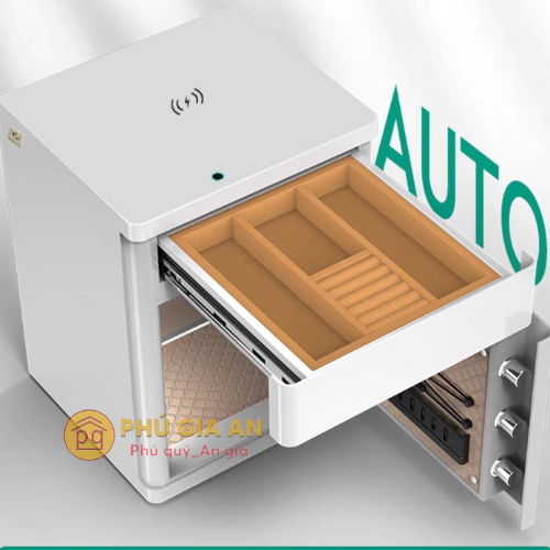 Mặt trên của két được tích hợp công nghệ sạc không dây hiện đại. Bạn chỉ cần đặt điện thoại lên mặt két là có thể sạc pin ngay lập tức. Ngoài ra, thiết bị còn hỗ trợ cổng sạc USB có dây, biến chiếc két sắt thành trạm năng lượng ngay cạnh giường ngủ.