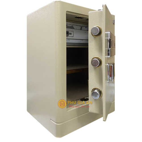 - Chế độ bảo mật 3 lớp: Mở két bằng khóa chìa + đặt vân tay + bấm mã số điện tử (phải dùng 3 yếu tố gồm chìa khóa + vân tay + mật mã mới mở được két)