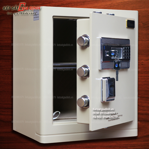 Mở két: cắm chìa khóa + bấm mã điện tử