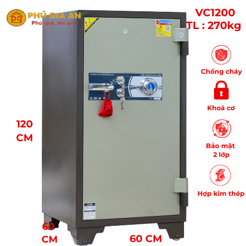 Thông số kỹ thuật két sắt chống cháy VC1200 khóa cơ đổi mã