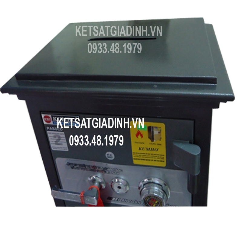 Trên nóc két được khoét 01 lỗ hình chữ nhật để đút tiền xuống khoang chứa.