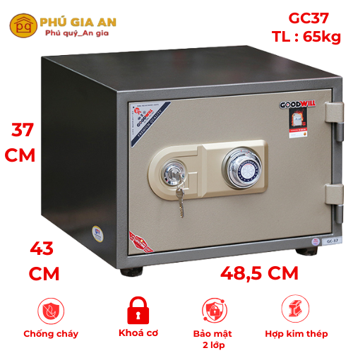 Mô tả chi tiết thông số kỹ thuật Két sắt mini Goodwill GC37 khóa cơ đổi mã có báo động.
