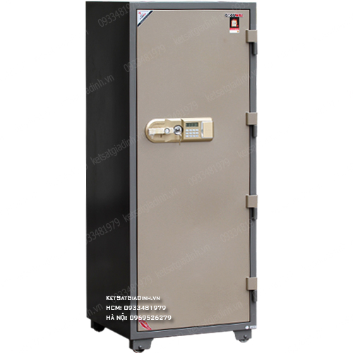 • Hệ thống khóa:Khóa mã điện tử có báo động, kết hợp khóa chìa bi cao cấp.Mật mã điện tử cài đặt tối đa 8 số theo ý muốn.Bàn phím tự động sáng đèn khi thao tác.Hệ thống cấp nguồn linh hoạt, có thể lắp pin bên trong hoặc bên ngoài két.