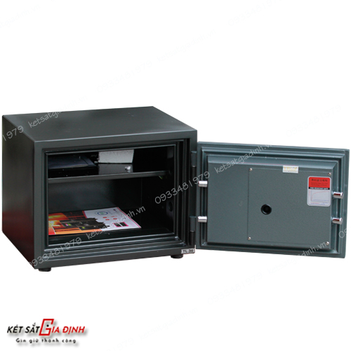 • Thép mạ điện (GA) chống rỉ, sản xuất trên dây chuyền hiện đại.Ruột két đúc nguyên khối từ đá, xi măng, thép hạt và chất chống cháy, giúp chống cháy, chống khoan cắt, đập phá.
