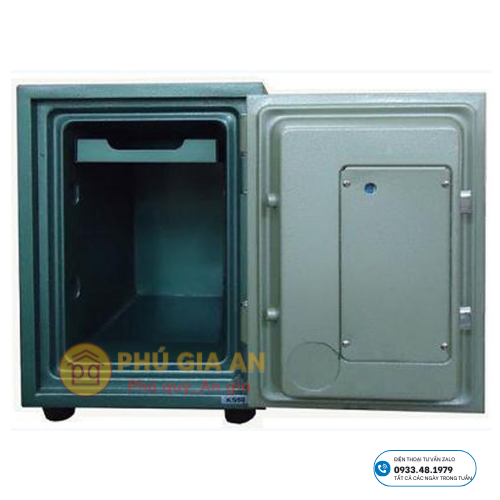 – Két được làm bằng thép không gỉ 2 lớp; thân két + cánh cửa được đổ đặc bằng chất liệu chống cháy cao cấp
