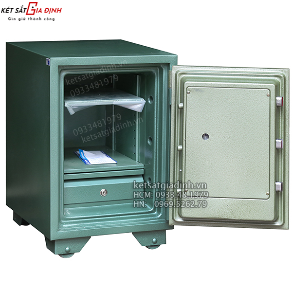 • Bên trong két có 01 ngăn kéo có khóa + 01 đợt di động.