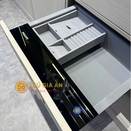 Nhờ thiết kế này, khi cần sử dụng, bạn chỉ cần chạm nhẹ vân tay và kéo ra là có thể nhanh chóng tìm thấy món đồ mình cần mà không tốn thời gian tìm kiếm.