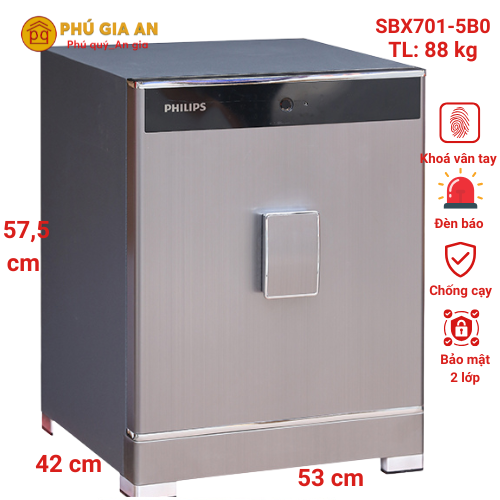 - Philips SBX701-4B0 loại bỏ hoàn toàn chìa cơ truyền thống, thay vào đó tích hợp công nghệ vân tay sinh trắc học và mật mã điện tử, đảm bảo an toàn tối đa.