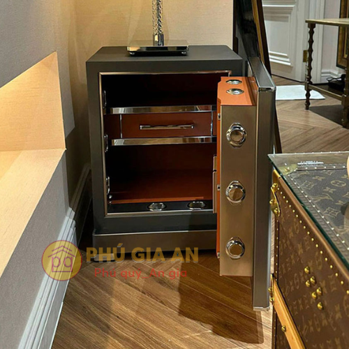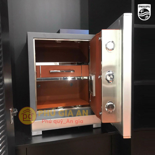 - Nội thất bọc da PU cao cấp.Mở két, người dùng sẽ thấy không gian lưu trữ được thiết kế tỉ mỉ với lớp bọc da PU cao cấp, kết hợp với viền kim loại sáng bóng, mang lại vẻ đẹp sang trọng và bền bỉ theo thời gian.