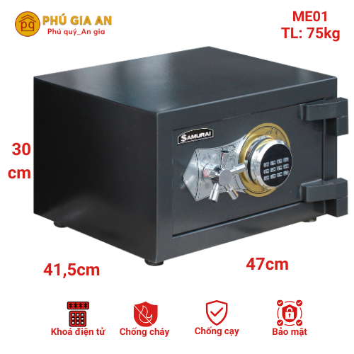 Thông số sản phẩm Két sắt điện tử Samurai ME01- két sắt điện tử không dùng chìa khóa.