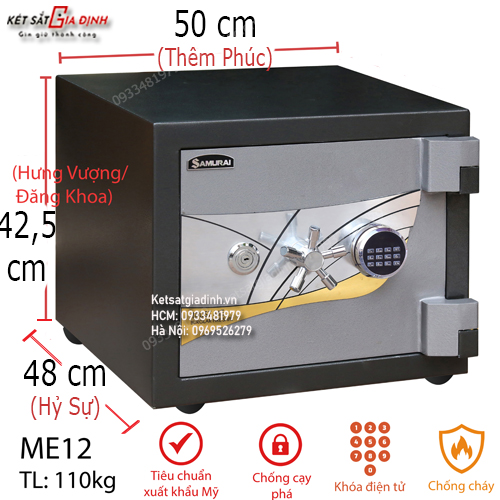 Mô tả chi tiết két sắt Samurai ME12 – khóa mã điện tử: