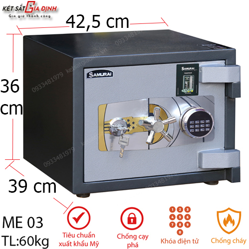 Thông số kỹ thuật của két sắt thép tấm Siêu cường Samurai ME03 khóa điện tử cao cấp