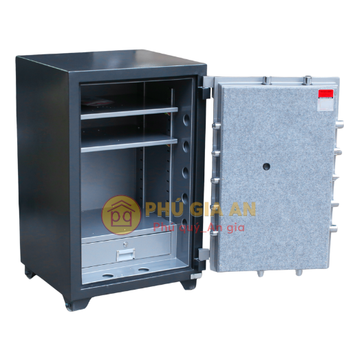 • Thân két  cấu tạo từ 2 lớp thép mạ điện (GA), kết hợp với đá, thép hạt và chất cách nhiệt đặc biệt, giúp chịu được nhiệt độ cao và có khả năng chống đục phá hiệu quả.