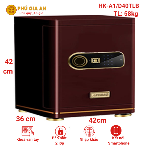 Két sắt vân tay điện tử Aifeibao HK-A1/D40TLB là dòng két nhập khẩu cao cấp với thiết kế nguyên khối, khóa bảo mật đa lớp và công nghệ chống cạy phá tiên tiến. Được sản xuất từ thép đúc kết hợp sợi thủy tinh, phủ sơn Nano bóng 3D chống cháy, sản phẩm mang đến độ bền vượt trội và thẩm mỹ sang trọng.