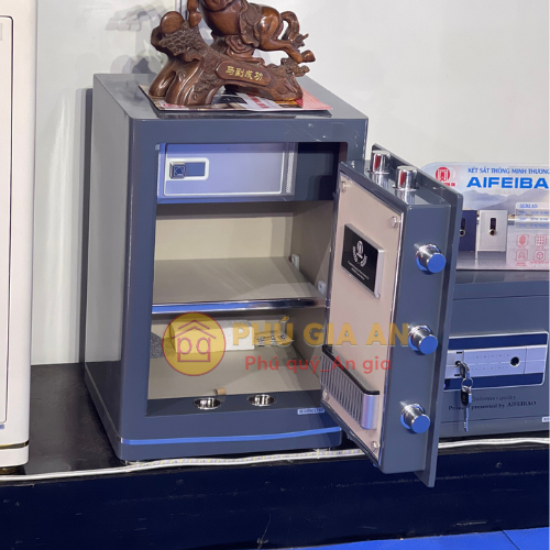 - Khóa mã vân tay kết hợp điện tử; có App điện thoại quản lý – mở két, có chìa khẩn cấp.