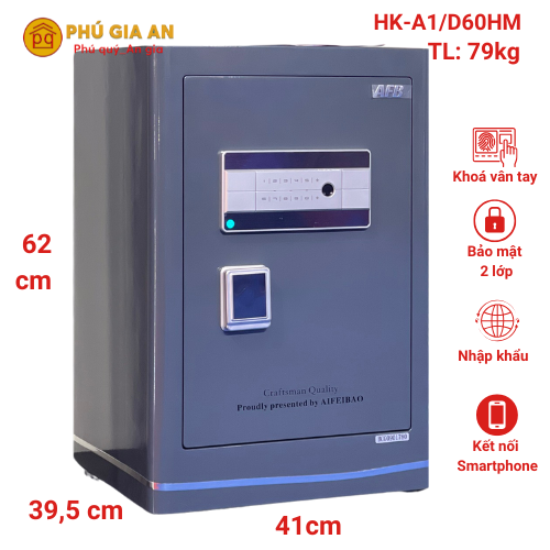 Mô tả chi tiết két sắt Thông minh Aifeibao HK-A1/D60HM khóa mã vân tay điện tử và App quản lý qua điện thoại phân phối chính hãng bởi hệ thống Gia Định: