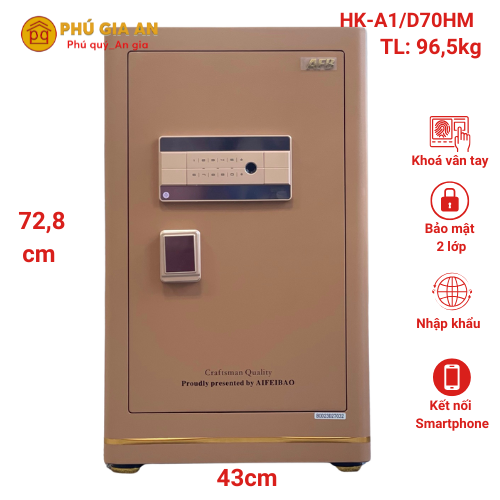 Mô tả chi tiết két sắt Thông minh Aifeibao HK-A1/D70HM khóa mã vân tay điện tử và App quản lý qua điện thoại