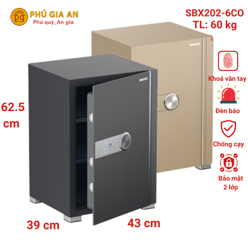 Két sắt thông minh Philips vân tay điện tử SBX202-6C0 là dòng sản phẩm hội tụ tinh hoa công nghệ hiện đại đến từ Hà Lan. Được thiết kế chuyên biệt để bảo vệ tài sản quý giá của gia đình và doanh nghiệp, mẫu két này không chỉ ngăn chặn nguy cơ trộm cắp mà còn là một món đồ nội thất sang trọng. Với kích thước nhỏ gọn và thẩm mỹ cao, sản phẩm dễ dàng hòa hợp với mọi không gian kiến trúc.