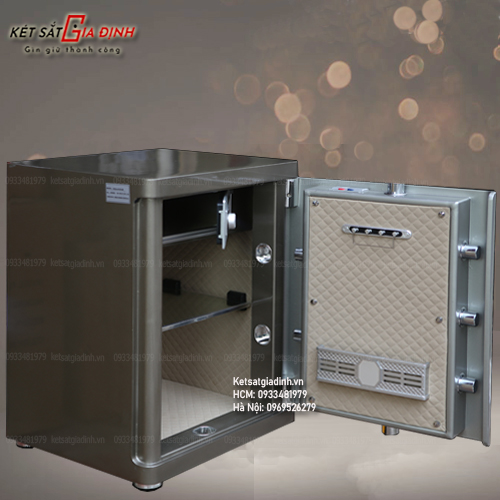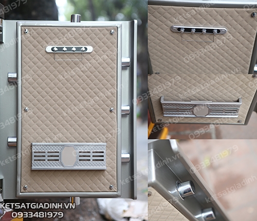 • Hệ thống khóa mở két: Kim loại mạ Crom và kính cường lực.
