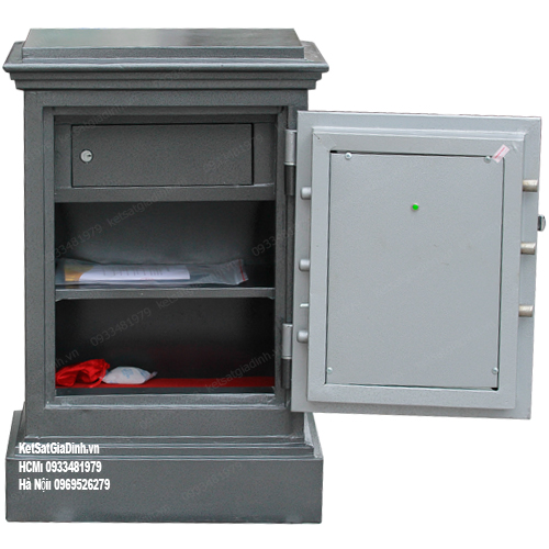 • Bên trong két có một ngăn phụ có khóa riêng biệt để bảo quản tài sản quý giá, cùng với một đợt di động để chia ngăn giấy tờ một cách khoa học và gọn gàng.