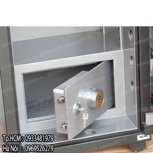 - Ngăn két trong có 1 khóa mã cơ + 1 khóa chìa.