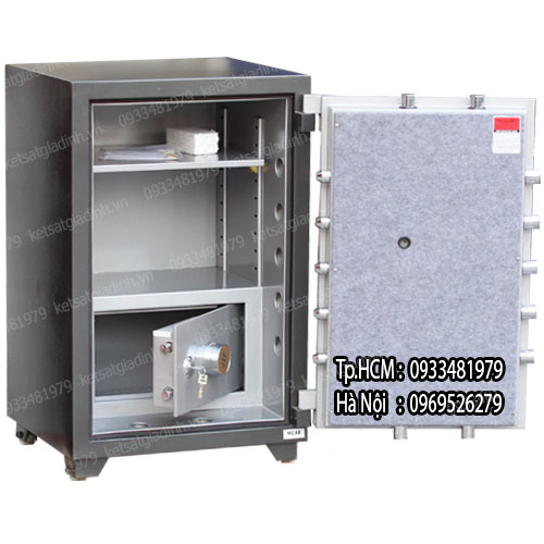 Đây là mẫu sản phẩm két trong két, trong lòng có thêm 1 ngăn két có khóa mã riêng biệt tăng gấp 2 lần độ an toàn bảo mật tài sản – rất phù hợp với nhu cầu khách hàng cần khoang chứa đồ bảo mật cao bên trong lòng két